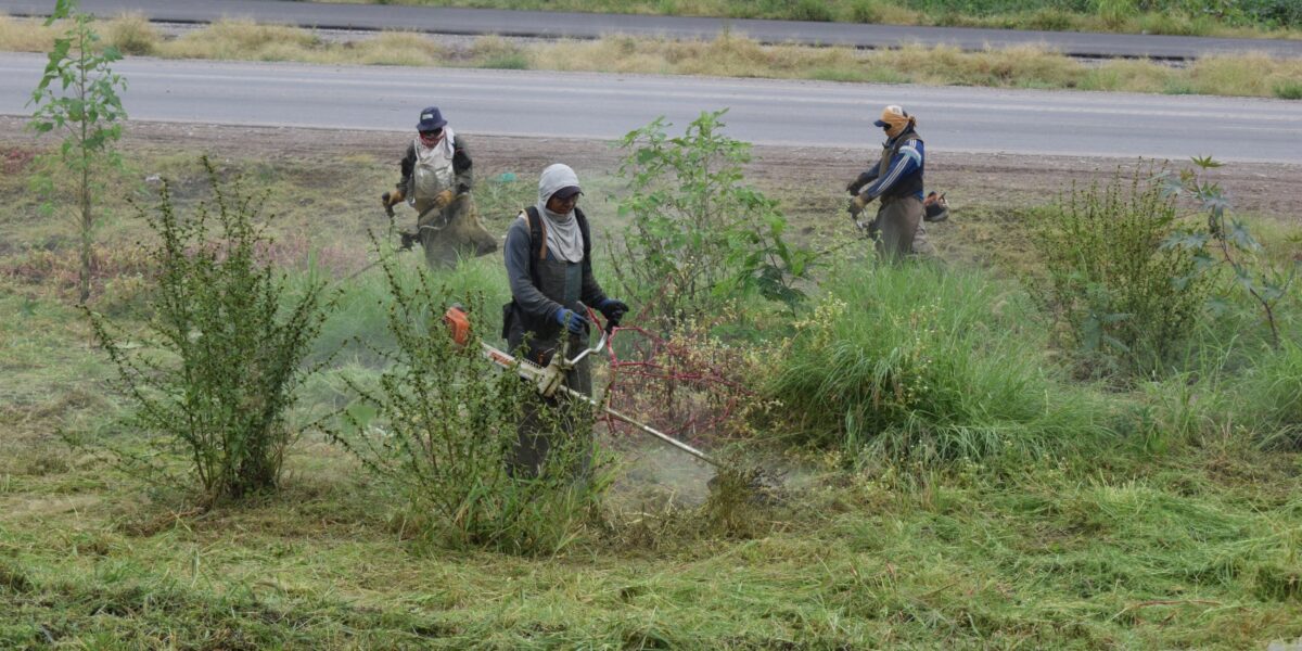 La Municipalidad de San Pedro de Jujuy, por intermedio del personal de la Dirección de Espacios Públicos continua con el operativo de desmalezamiento en diferentes barrios de la ciudad, en el marco de la campaña de lucha contra el dengue. Esta mañana una cuadrilla de empleados con motoguadañas y machetes trabajaron en la margen de ruta 34 a la altura