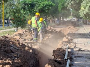 Se trata de un recambio de cañería PVC de 75 mm para reemplazar una cañería que quedo obsoleta, una vez terminado esto comenzamos con las conexiones domiciliaras”, expresó Barboza.