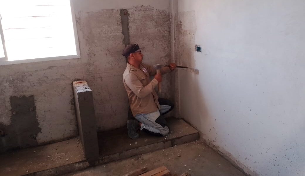 La Municipalidad de San Pedro de Jujuy que dirige el Intendente Julio Bravo avanza con las obras en el edificio de la Banda de Música Juvenil ubicada en barrio 48 Viviendas en el sector de La Nueva Ciudad. A cargo del equipo de la Secretaría de Obras Públicas, se procedió a colocar los cerámicos en el hall del ingreso principal,