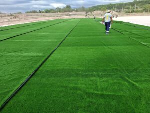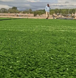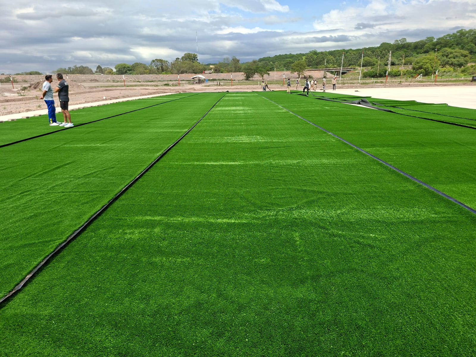 La gestión municipal del Intendente Julio Bravo dio inicio a una nueva etapa en la construcción de la cancha de césped sintético ubicado en La Mielera. Se instaló parte de los rollos en el futuro campo de juego. A cargo del equipo de la Secretaría de Obras Públicas, comenzaron a trabajar en una nueva etapa “recibimos la gente que viene, los instaladores podríamos decir, nosotros estamos haciendo la colaboración de esto, empezamos con la instalación de lo que es la cacha de césped sintético, lo que sería la alfombra”, contó José González. El titular del área pavimentación de la comuna sampedreña contó que “nos va a llevar el transcurso de la semana para dejarlo ya todo listo, se realiza un trabajo en conjunto con la gente que es proveedora de este césped sintético”. Cabe destacar que la colocación de la alfombra está a cargo del equipo que llegó desde Buenos Aires y forman parte de la empresa proveedora del sintético, por lo que desde la Municipalidad se encuentran colaborando. A su tiempo, José Cabrera, remarcó que se trata “de una obra que va a quedar para siempre en la ciudad de San Pedro de Jujuy, estamos haciendo una obra monumental, poco a poco está quedando maravilloso esto, así que muy orgulloso de pertenecer a esta gestión que ha puesto muchísimo en el deporte y esto es algo importantísimo”. Sin dudas que se trata “de un sueño hecho realidad, sobre todo para los amantes del hóckey, disciplina que en nuestra ciudad creció mucho a través de las escuelas municipales y la liga que impulso nuestro Intendente Julio Bravo”, opinó el Subsecretario de Deportes. Cabrera recordó que “nuestro Intendente había prometido una cancha de césped sintético, hace un tiempo veníamos contándole a la gente sobre los proyectos, sabíamos que iba a costar porque había mucha necesidad en San Pedro, pero se fueron concretando como ser el ciento por ciento de los vecinos tienen agua potable de red, algo que no había en diciembre del 2015, se hicieron obras de res de cloacas, iluminación, y ahora la posibilidad de crecer en infraestructura deportiva”, sostuvo. Añadió además que “se lograron grandes cosas, promesas que se van cumpliendo, como el caso de la cancha de newcom que se está construyendo junto al equipo Las Galatics, un estadio para la gente de vóley, para la gente de básquet, por eso es que le seguimos pidiendo a la gente que nos acompañe en este proyecto que llevamos adelante con el doctor Julio Bravo para que San Pedro siga creciendo”. Con la nueva cancha “la Liga Municipal de Hockey seguirá creciendo, hace cuatro años comenzamos con 200 nenas, nenes, hoy contamos con alrededor de 600 y el año que viene sin dudas llegaremos a los 1200”. Por último, ponderó que la construcción de la cancha sintética de hockey “es con aporte municipal y la importante ayuda del Gobienro de la provincia, es la manera de poder seguir trabajando y construyendo”, finalizó José Cabrera.