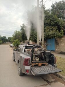 La Municipalidad de San Pedro de Jujuy que dirige el Intendente Julio Bravo, continúa con los trabajos preventivos y de bloqueo en zonas afectadas por chikunguya. Debido a la situación epidemiológica se doblan los esfuerzos en toda la ciudad. En este sentido, el Jefe Comunal mantuvo una reunión en su despacho ubicado en la planta baja del Palacio Municipal junto a Rubén Bonomo, Director de Control de Sanidad, Plagas y Zoonosis, y Evangelina Vechetti, Directora del Hospital Paterson. “Mantuvimos una reunión con el Intendente Julio Bravo para seguir coordinando acciones como lo venimos haciendo con el fin de seguir haciendo frente a la situación epidemiológica en la que estamos que por el momento está controlado”, apuntó la titular del nosocomio sampedreño. La idea es evitar que pueda proliferarse luego que se diera a conocer un par de casos positivos de chikunguya, por eso se solicitó sostener la higiene en los domicilios, ya que la comuna junto al área de Defensa Civil y el hospital se encargan de hacer el trabajo casa a casa y la fumigación sobre todo en los espacios abiertos. La doctora Vechetti recomendó que los ciudadanos usen repelentes “hoy por hoy es la mejor forma de prevenir que el mosquito pueda llegar a picar”, sostuvo. A su tiempo Rubén Bonomo contó que “desde la Dirección de Zoonosis se está haciendo el trabajo de bloqueo químico que es la fumigación, vamos a continuar toda la semana, haremos por toda la zona como ser San Miguel, La Marced, Mina Puloy y 25 de Mayo, está realizado, pero vamos a ir por otros puntos de la ciudad a modo preventivo”.