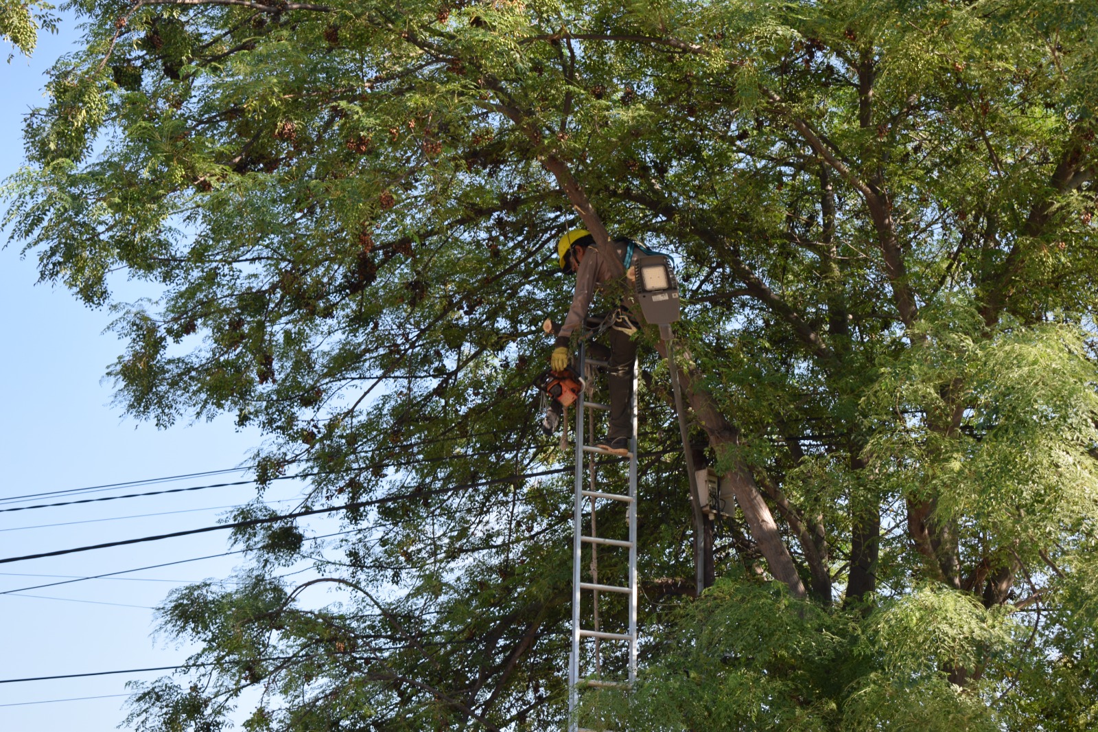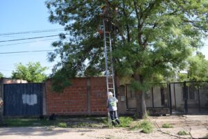 A cargo de la Dirección de Medio Ambiente y Cambio Climático, se hicieron diversos trabajos “vamos a ir por los distintos barrios, los árboles tienen un crecimiento muy bueno, pero están tapando la iluminación de las calles, veredas, por lo tanto se procedió a reducir las copas”, precisó Nicolás Pérez.