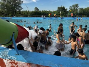 Aprovechando la diversión que genera la espuma, se sumaron los padres, mares, gente pasó la tarde en lugar “es una alternativa que se repite, ya que el año pasado también e hizo y fue un éxito, por lo que la gente nos pedía que repitamos”, expresó añadiendo “quizás en un par de semanas lo hagamos de nuevo”.