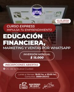 Curso Express de Educación Financiera, Marketing y Ventas por WhatsApp – Ideal para emprendedores que buscan potenciar sus negocios y estrategias de ventas digitales, con un costo de $15.000.