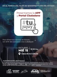 La Municipalidad de San Pedro de Jujuy, a través de la Gestión del Intendente Julio Bravo, invita a toda la comunidad a participar de una capacitación donde se presentará la nueva App y el Portal “Tu Jujuy”, una herramienta digital creada para hacer más simples y accesibles las gestiones cotidianas. La cita es este miércoles a las 8.30 en Casa Municipal de la Cultura.
