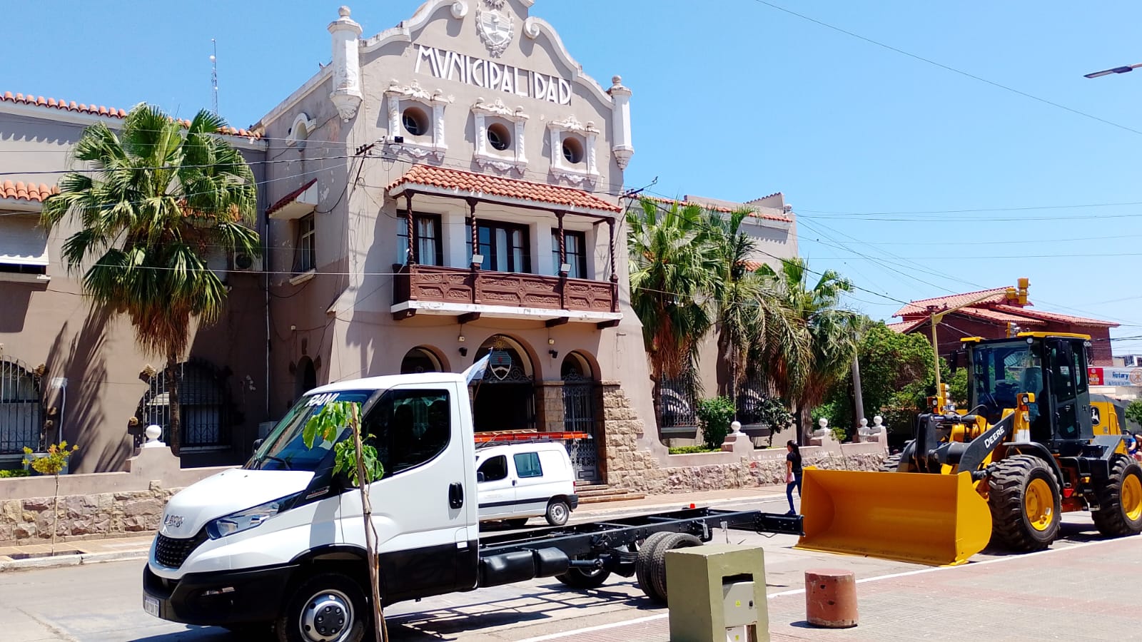 Se trata de un camión Iveco Dayli 0km, y una pala cargadora Jhoon Deere 444G, con cargadora frontal y un balde con capacidad de 20 M3. Ambos vehículos fueron adquiridos de contado con fondos propios de la municipalidad. Serán utilizados en diversas tareas, como ser traslado de materiales y personal a las obras, en el caso del mini camión y obras de pavimentación, levantamiento de escombros, limpieza de calles, entre otras funciones que cumplirá la cargadora.