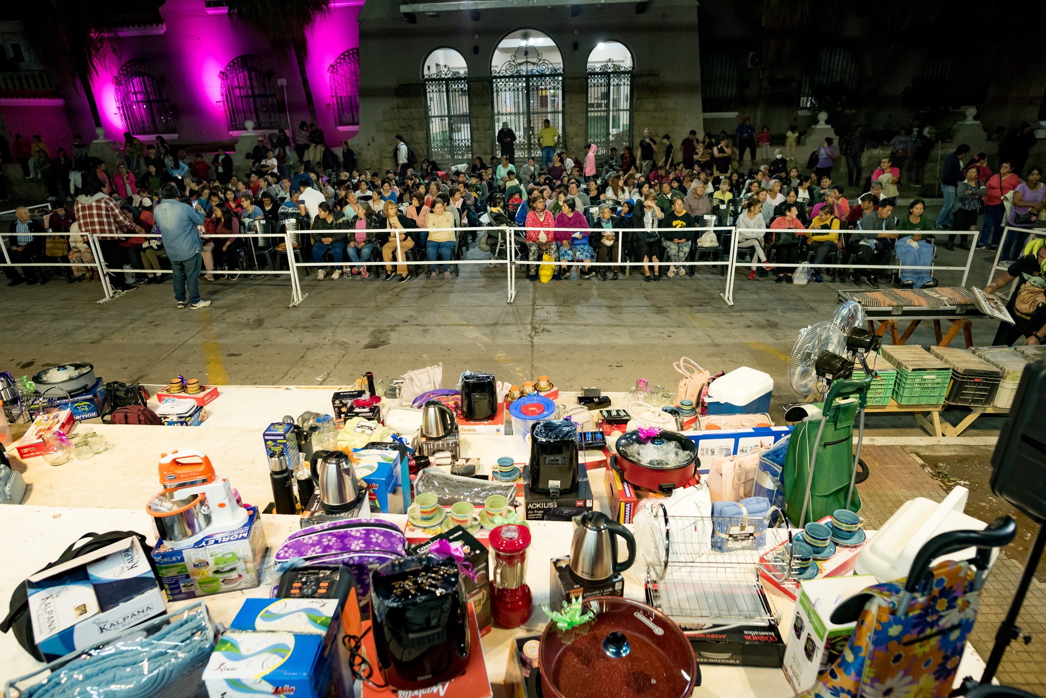 La gestión municipal del Intendente Julio Bravo agasajó a todas las madres de la ciudad de San Pedro de Jujuy en su día con un show que tuvo música en vivo y muchos sorteos compartiendo en familia. La cita tuvo lugar en plaza General Belgrano. Como cada festejo, se vivió una fiesta, porque otra vez la plaza central estuvo colmada de familias de diferentes sectores de la ciudad y pudieron disfrutar del espectáculo de Oriana Reyes, la presentación especial de Willy Campero. “Tuvimos un festejo con una energía tremenda cumpliendo con el principal objetivo que fue convocar a todas las madres de la ciudad a pasar una noche distinta en la cual ellas fueron las agasajadas”, apuntó Norma Massa. La Subsecretaria de Cultura y Turismo de la comuna sampedreña destacó que “tuvimos la participación especial del DJ Andrés en el marco del programa provincial Siempre Jóvenes que lleva adelante la Secretaría de Cultura, con toda su música ochentosa que nos contagió a todos reviviendo los 80, música de distintas épocas causando a la gente muy contenta, a la mamá feliz disfrutando el programa de provincia que se suma a la propuesta de la intendencia”, detalló. Norma Massa, resaltó el trabajo en conjunto de las diferentes áreas del municipio “con el acompañamiento principal de nuestro Intendente Julio Bravo que cada año realiza este agasajo, ya que nos acompañaron Defensa Civil, Secretaría de Desarrollo Humano, Secretaría de Modernización con la cobertura, Oras Públicas en el armado del escenario”, comentó. Por supuesto, el párrafo aparte para “la mamá, porque la fiesta fue para ella, tuvimos muchísimos premios, aunque no solamente se pensó en los premios y el sorteo, sino que hayan pasado una excelente noche”. Previo al inicio del sorteo de los regalos, se procedieron a la entrega de los números a las madres presentes “se ha incrementado la cantidad de regalos con respecto a lo que fue el año, estamos apostando a mayor cantidad de regalos, ya que tuvimos más de 250 cosas, con premios grandes muy lindos”. Sucede que regalaron desde un set de camping que incluyó gazebo, reposeras, termos, como así también parlantes, cocinas, heladeras, lavarropas, muchas freidoras, bocas eléctricas, bazar, carteras, accesorios, entre otras cosas.