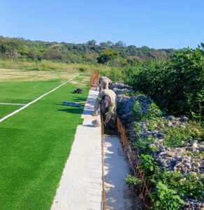 En paralelo, avanzan las tareas en el predio La Mielera con la construcción de la cancha de hockey de césped sintético, una obra de gran impacto para el desarrollo deportivo local. González recordó que el proyecto contempla la ejecución de tres canchas en total: dos con medidas profesionales y una destinada a entrenamiento, que surgirá de la división de una de las superficies proyectadas.