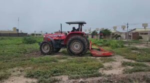 El desmalezado en la zona que cubre los barrios Soledad, Eva Perón, Tupac Amaru, “están divididos, por un lado las máquinas desmalezadoras, por otro el equipo de macheteros, un poco más allá el tractor corta yuyos, entre todos vamos a dejar la zona impecable”.