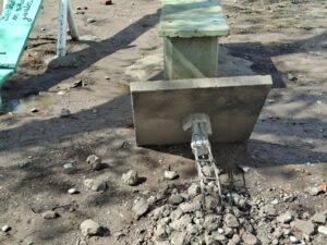 De manera inmediata, personal de obras públicas comenzó a trabajar para resolver este inconveniente. Los daños se produjeron en dos mesas, cuya base (de hierro y hormigón) fue literalmente destruida, hasta dejarla tirada en el suelo.